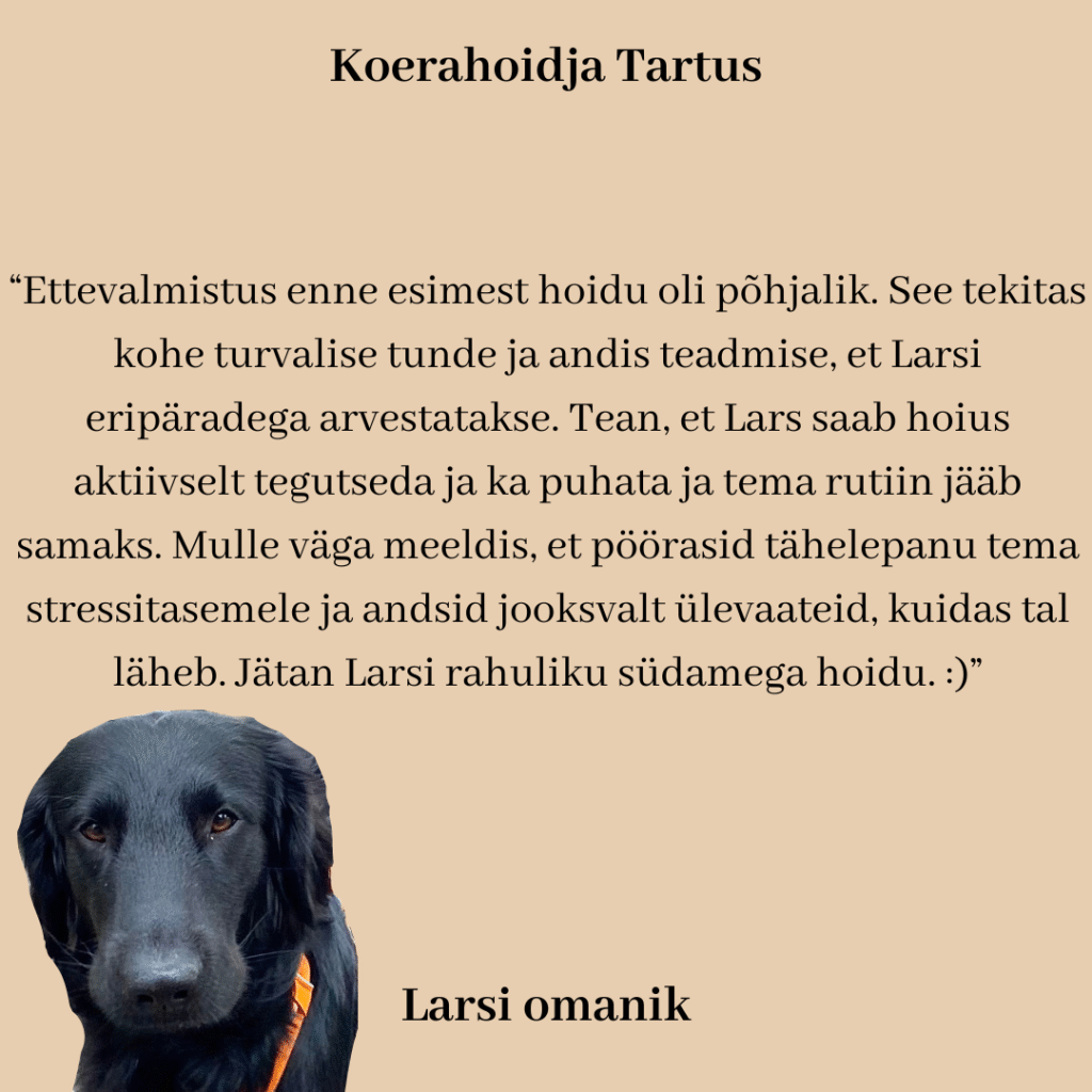 Tagasisided Siit saad lugeda tagasisidesid!Kui soovid rohkem näha koerte hoiuseikluseid, siis mine jälgi minu facebooki lehte Koerahoidja Tartus või jälgi mind instagramis @koerahoidjatartus!